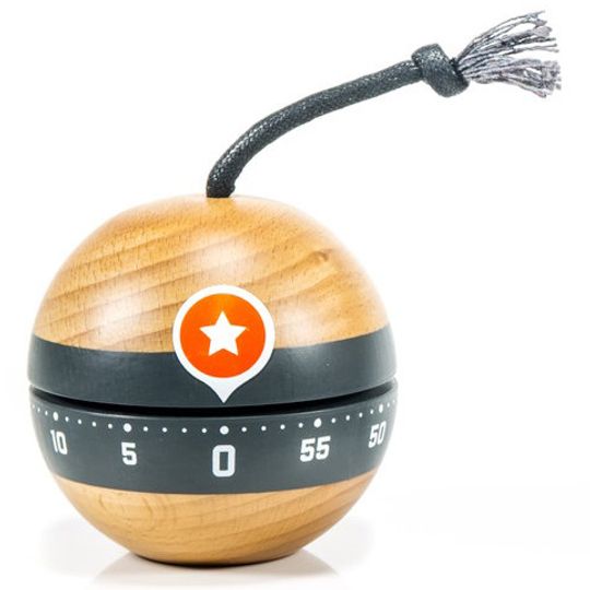 Магазин Мистер Гик представляет вашему вниманию Кухонный таймер Kaboom. Его сферический корпус выполнен из натурального дерева (не используйте вблизи от открытого огня!), а роль фитиля выполняет декоративный шнурок в верхней части. Снизу шарик вырезан так, что может устойчиво держаться на ровной поверхности.