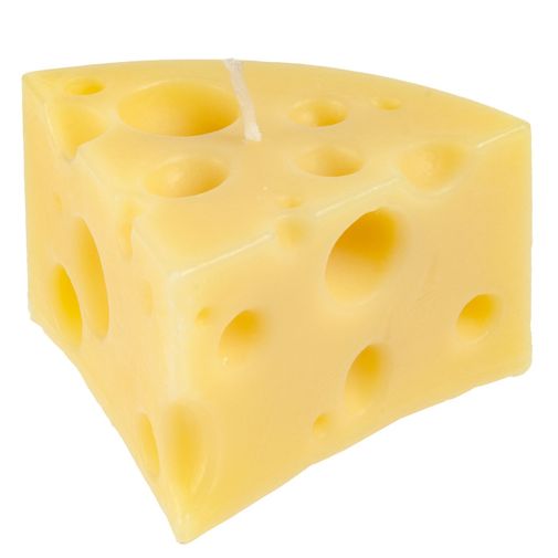 Оригинальная свеча в форме кусочка вкусного сыра с дырочками. Из-за реалистичного цвета и внешнего вида легко спутать с настоящим сыром. Хорошая новогодняя отсылка к символу 2020-го года — Крысе.